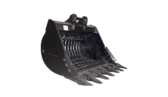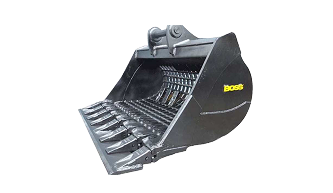 The Boss Sieve Bucket is a wide bucket with the same profile as the mud bucket, but ribbed to sort construction materials.