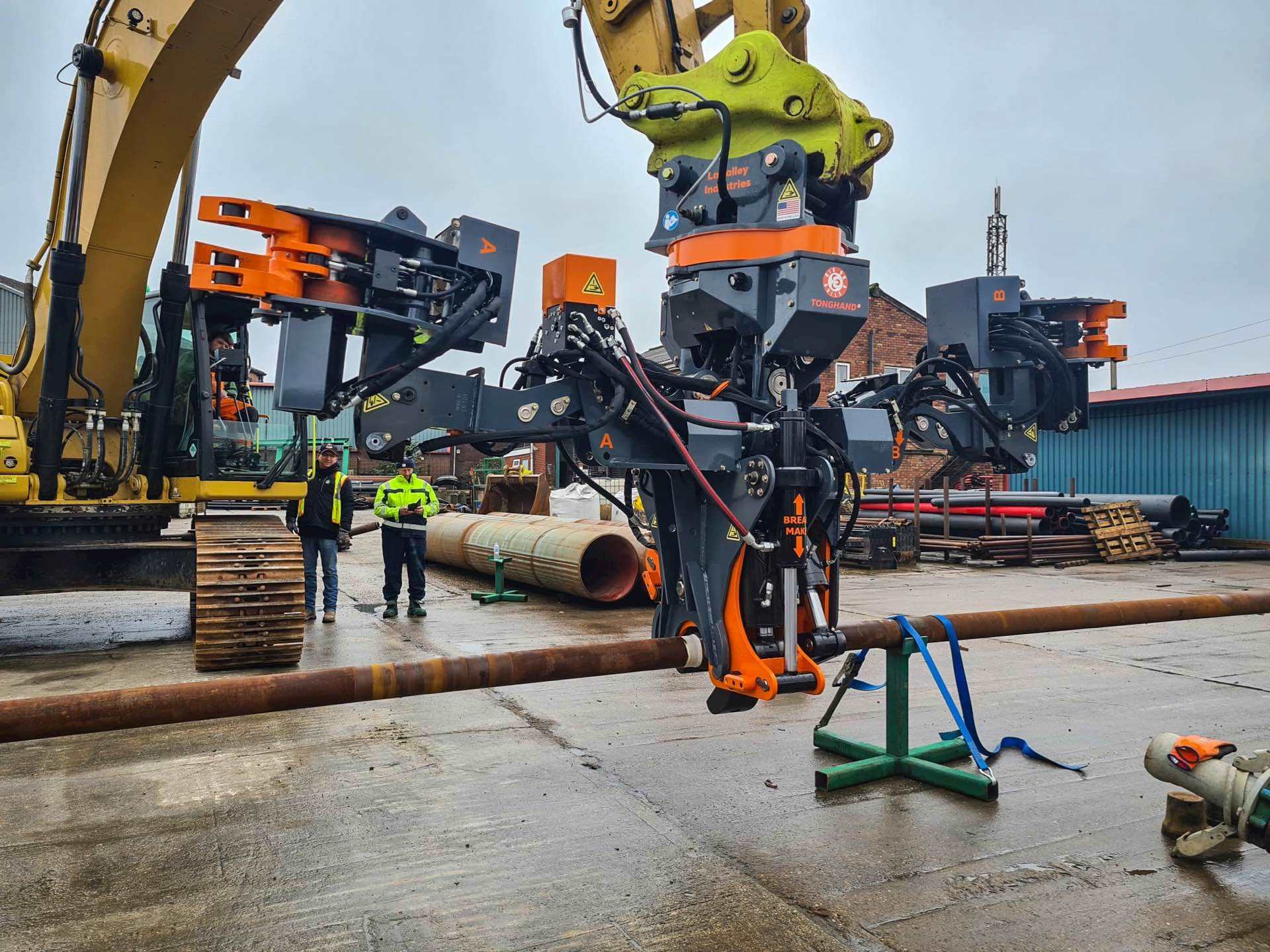 TONGHAND® eliminates the use of back-breaking wrenches and removes personnel from working in danger zones. TONGHAND® mounts to any brand of excavator—the excavator’s auxiliary hydraulics safely and efficiently power the TONGHAND® system.